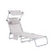 Izgatavots no dzelzs, kas pārklāts ar nerūsējošā tērauda alumīniju un pret UV izturīgu sintētisko audumu, šis krēsls var turēt līdz 150 kg; Drošības iekavas neļauj tam krīt sev, tāpēc neuztraucieties un baudiet sauļošanās