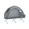 Skydd året runt: Slitstarkt oxfordtyg med PE-beläggning, upphöjd liggyta och myggnät håller fukt, insekter och smuts borta – samtidigt som du får frisk luft.